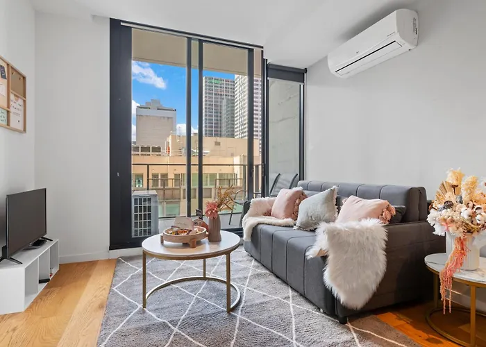 Located approximately a 20-minute walk from Flinders Street railway station, the 70 m² Prime Location Southern Cross 2Br Freetram Skybus Melbourne apartment is just 0.7 km from the easy-to-access Docklands Stadium.